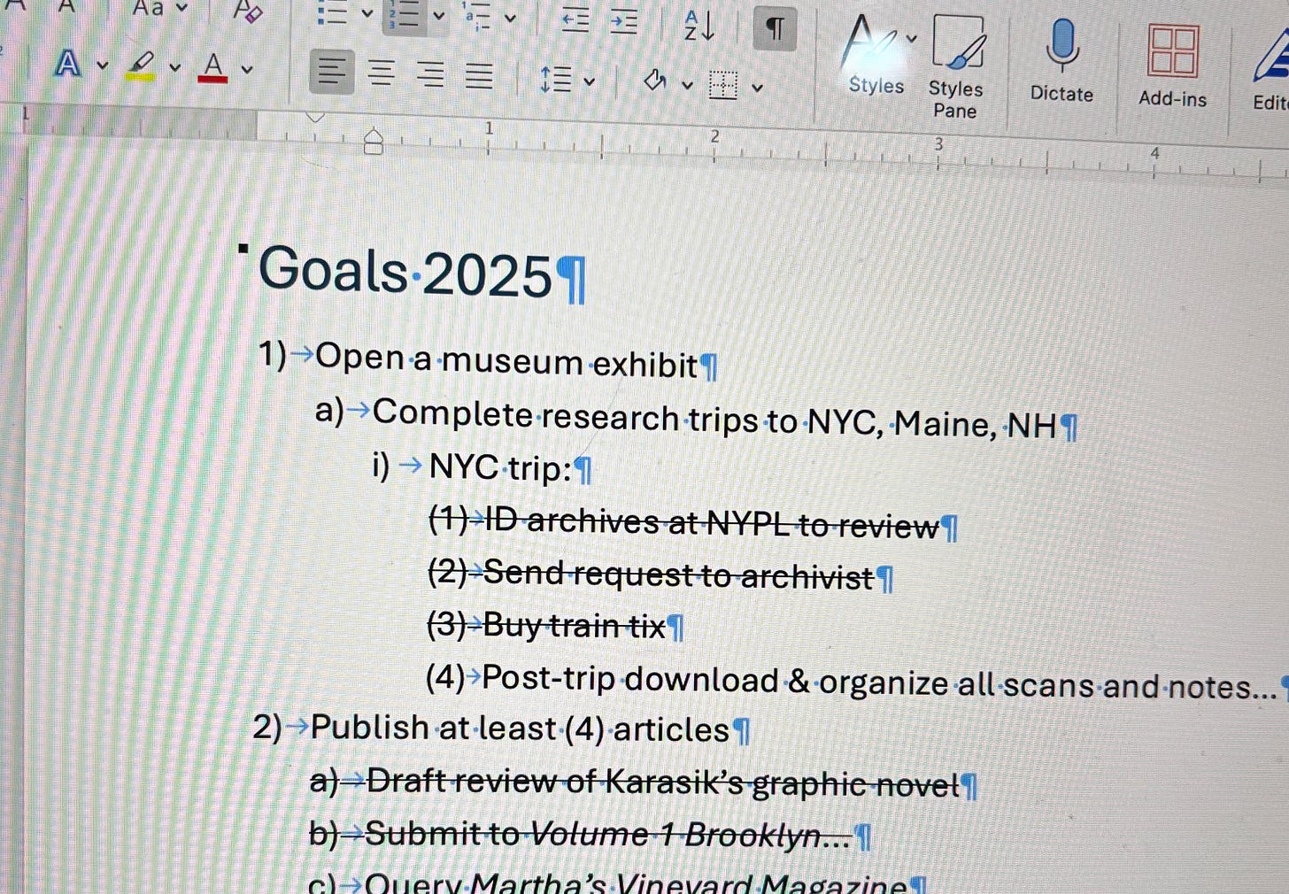 Weeks rolled by. As I completed a “next step,” I crossed it out. A few months into 2025, with all the cross-outs, my list had gotten messy: